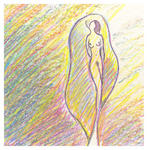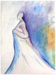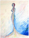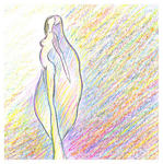 Frële,gevoelig, fragiel,....maar toch drukt de houding zelfzekerheid uit. Aspecten van de vrouwelijke persoonlijkheid uitgedrukt in gevoelsmatige schetsen. (mixed media)