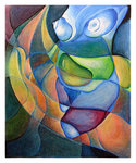 Een speelse benadering waarbij vloeiende vormen en lichaamsfragmenten gecombineerd worden. De kleuren worden vooral gebruikt om de gevoelsstemming weer te geven.